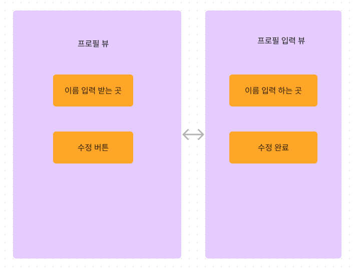 ProfileViewController 화면이 밑에 있는 상태에서 그 위에 EditProfileViewController 화면이 올라오고,