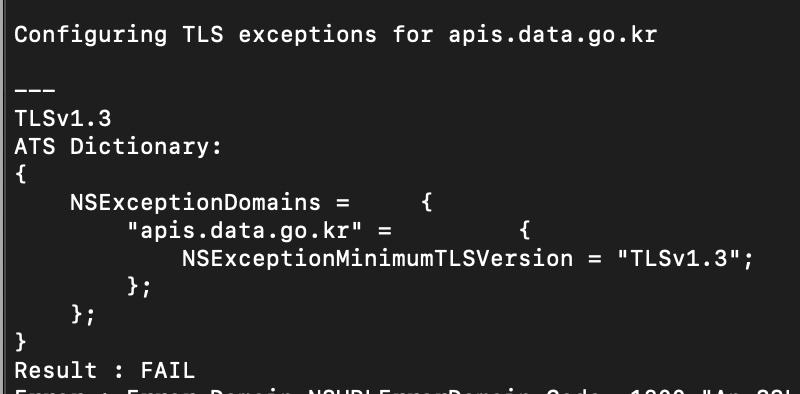 'NSExceptionDomains' => 'apis.data.go.kr' => 'NSExceptionMinimumTLSVersion'