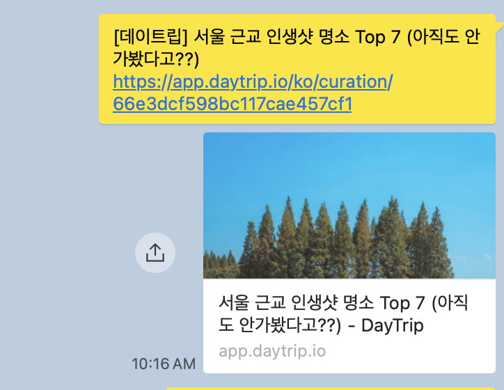 위에 이미지 처럼 공유할 때 나오게 하고싶습니다.