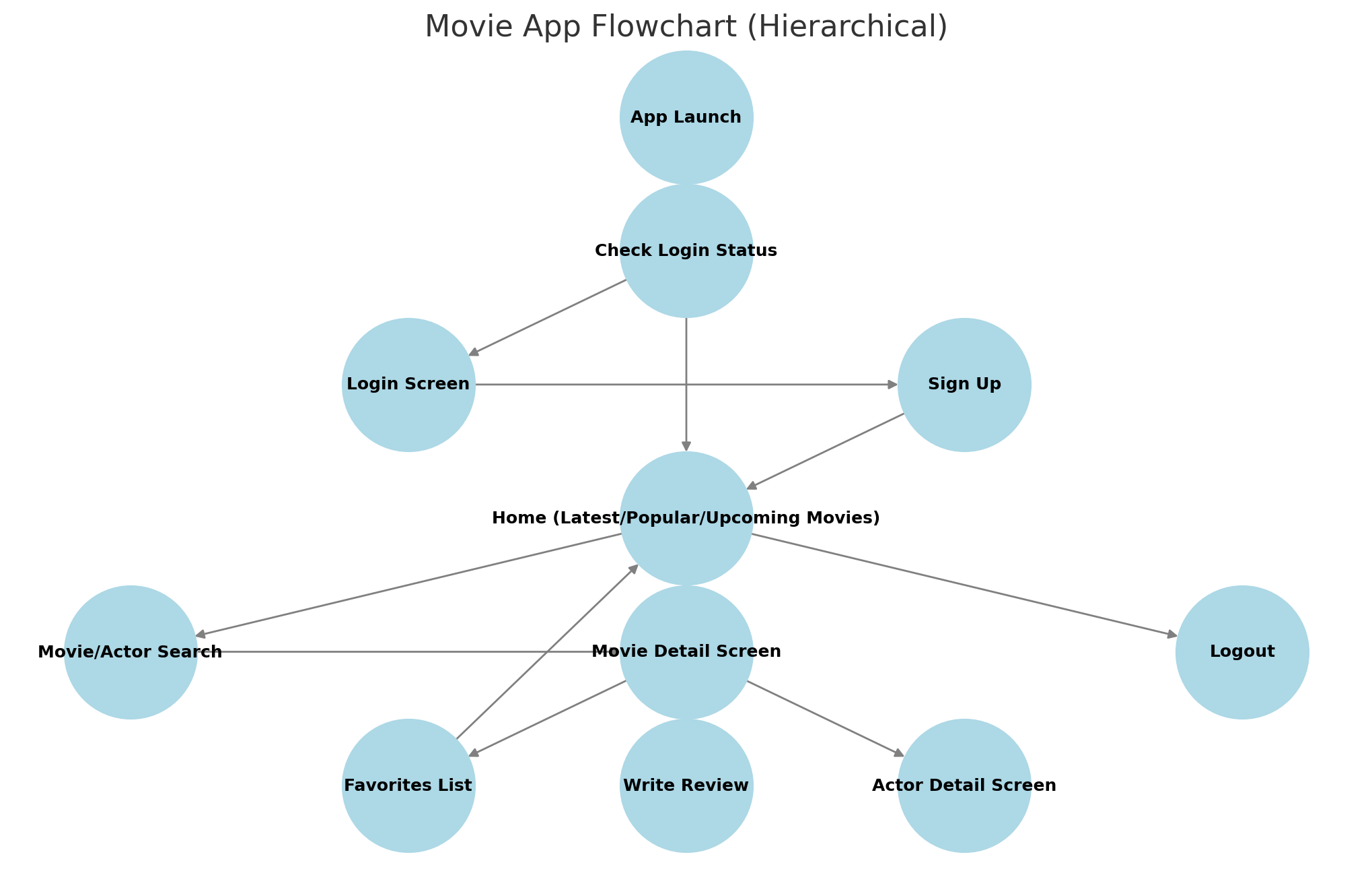 앱은 영화 정보를 제공하고, 회원 가입을 통해 즐겨찾기 및 리뷰 기능을 지원하는 구조로 설계됨.