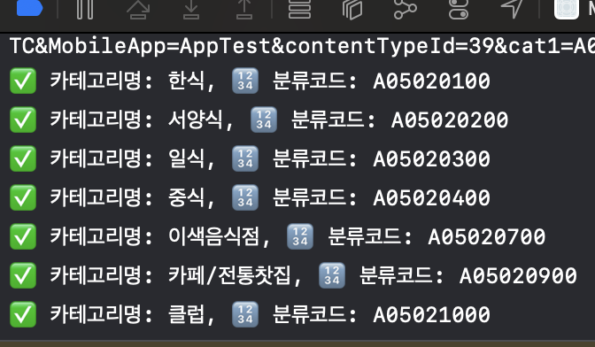 let urlString = "\(Constants.baseURLString)/categoryCode1?serviceKey=\(Constants.api_key)&numOfRows=10&pageNo=1&MobileOS=ETC&MobileApp=AppTest&contentTypeId=39&cat1=A05&cat2=A0502&_type=json"