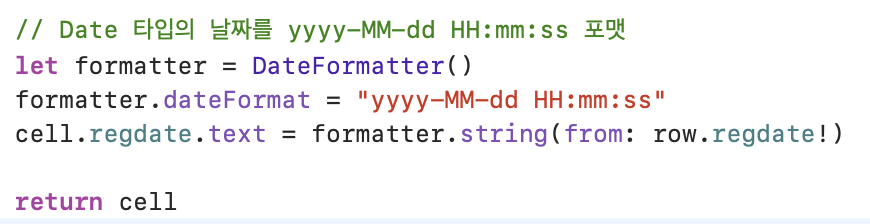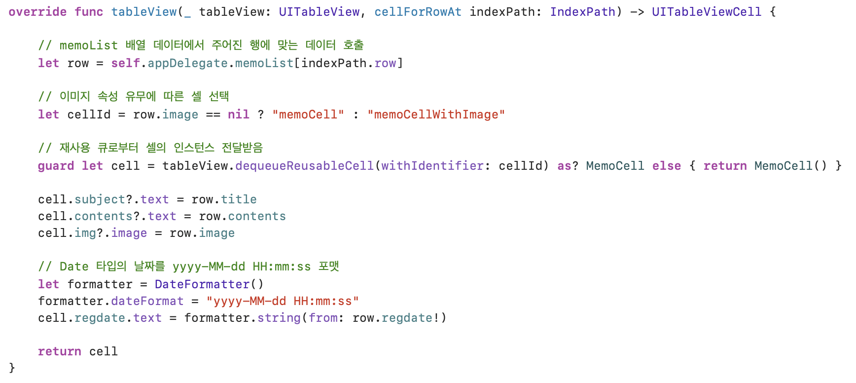 tableView(_: cellForRowAt:) 메소드를 통해 개별 행을 어떻게 구성할지 코드 구현