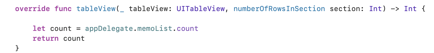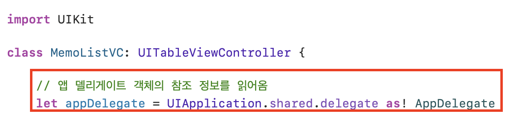 앱 델리게이트의 memoList 배열에 저장된 데이터를 읽어와