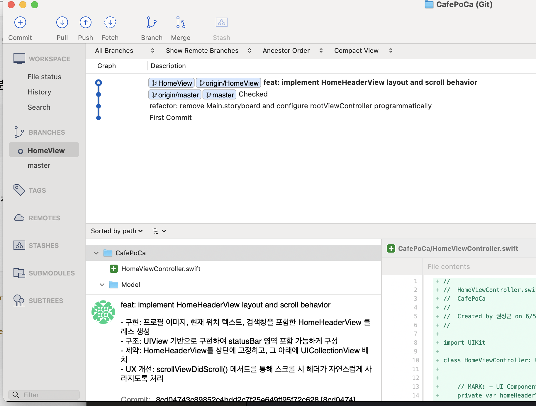 │ └─ 커밋: refactor: adjust scroll behavior of HomeHeaderView