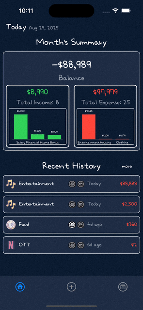 - 델리게이트(Delegate): AddTransactionViewController와 같은 모달 화면이 닫힐 때, 델리게이트 패턴을 통해 MainTabBarViewController에게 알립니다.
