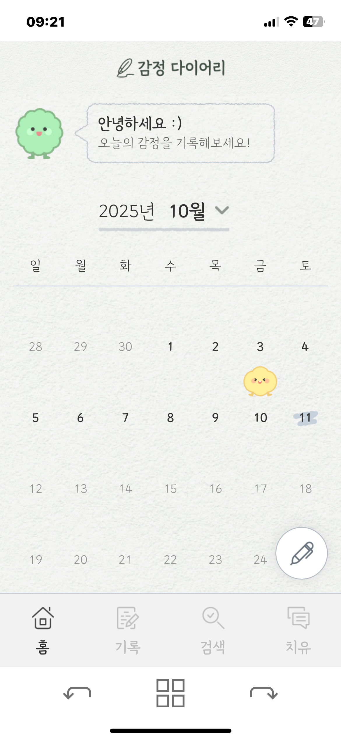 감정일기의 홈화면은 기록이 아니라 감정 그 자체에서 출발해야 합니다.