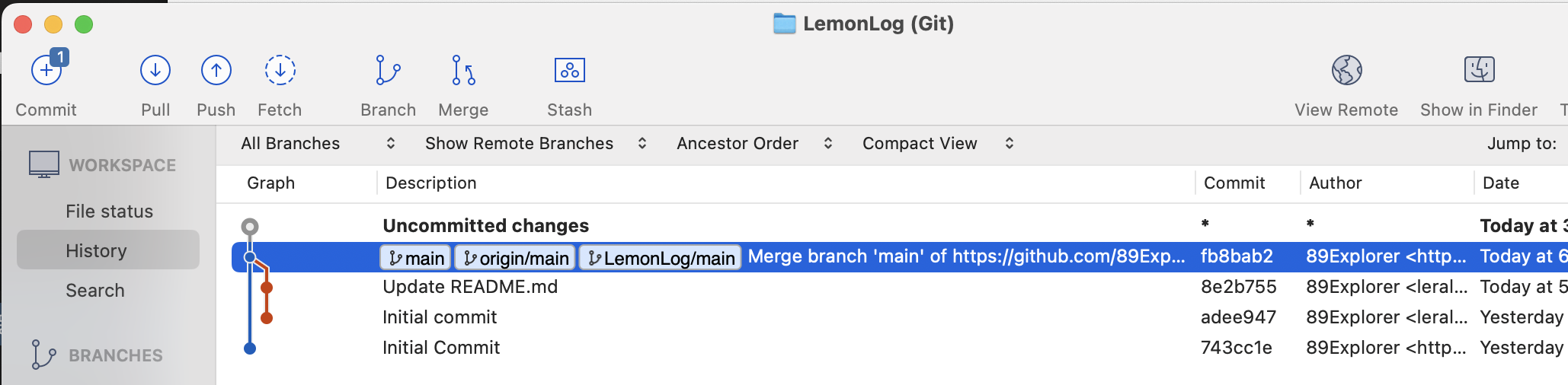 git remote add origin https://github.com/89Explorer/LemonLog.git