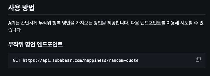 2. URL: https://api.sobabear.com/happiness/random-quote