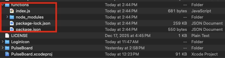 Firebase functions 설정을 완료하면 프로젝트 폴더에 "functions"라는 폴더가 생긴다.