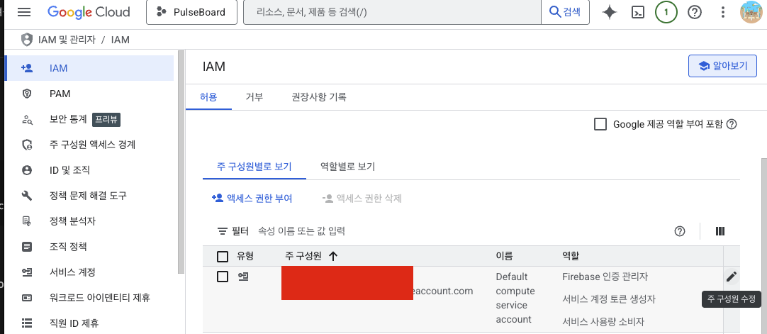 IAM에서 다음 권한을 서비스 계정에 추가
