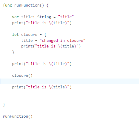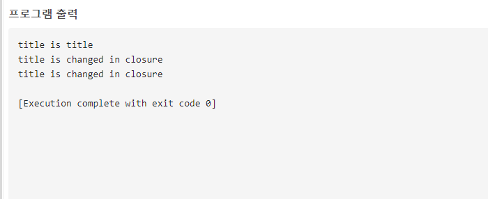 closure는 title 외부 변수를 클로저 내부에서 참조방식으로 캡쳐하기 때문에