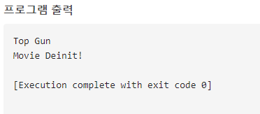 그러면 아래와 같이 "Movie Deinit!" 출력됨
