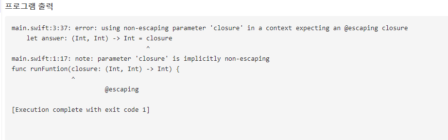 지금까지 써온 클로저는 다음과 같이 "non-escaping Closure" 임