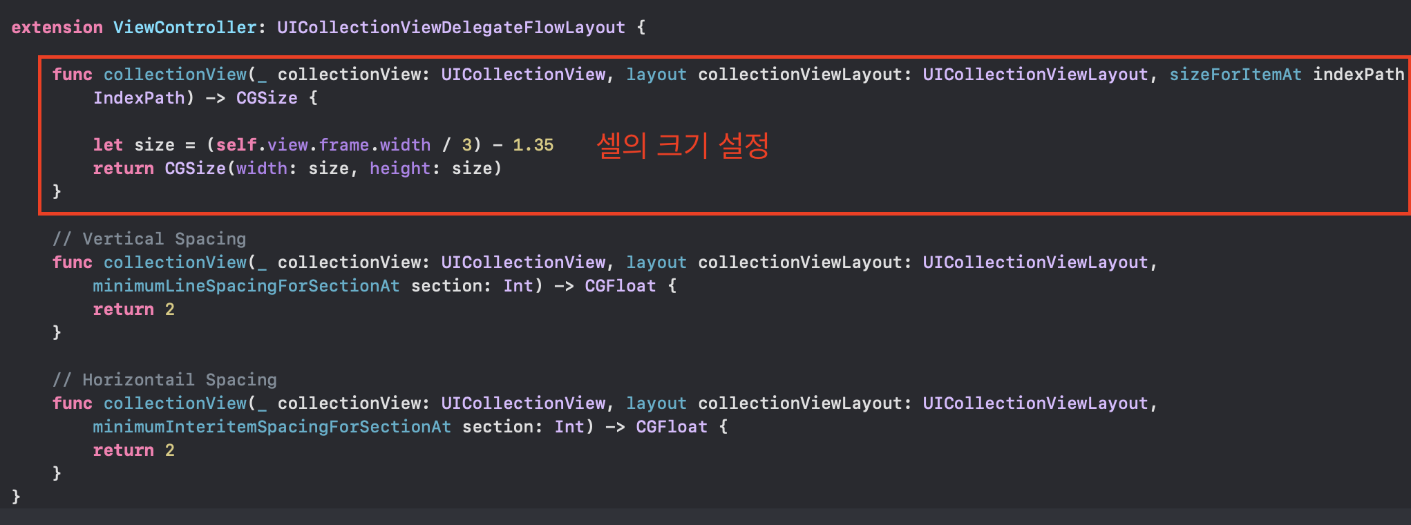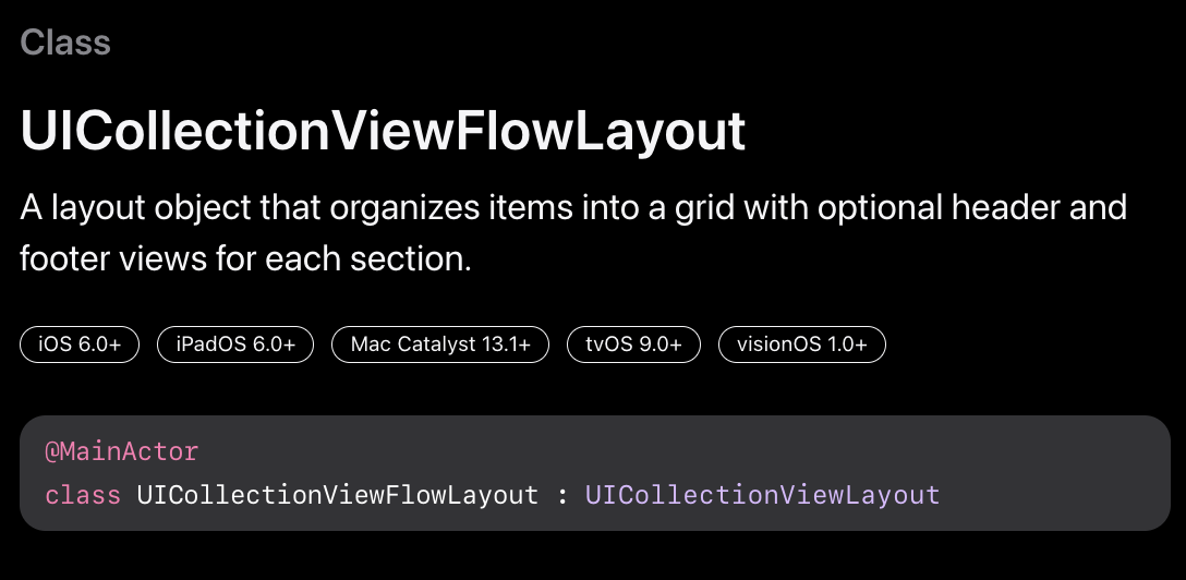 먼저 UICollectionViewFlowLayout 클래스의 인스턴스 layout을 생성
