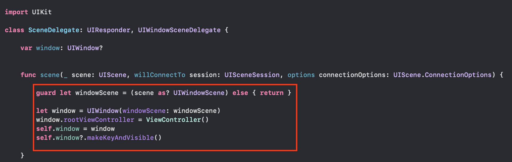 sceneDelegate.swift 파일 내에 코드 구현