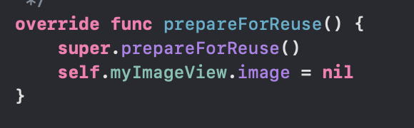 여기서 중요한 점은 prepareForReuse() 함수
