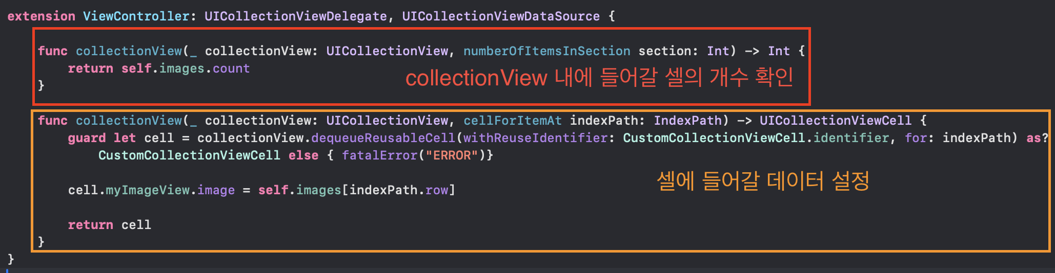 ViewController.swift 파일 내에 collectionView 구현