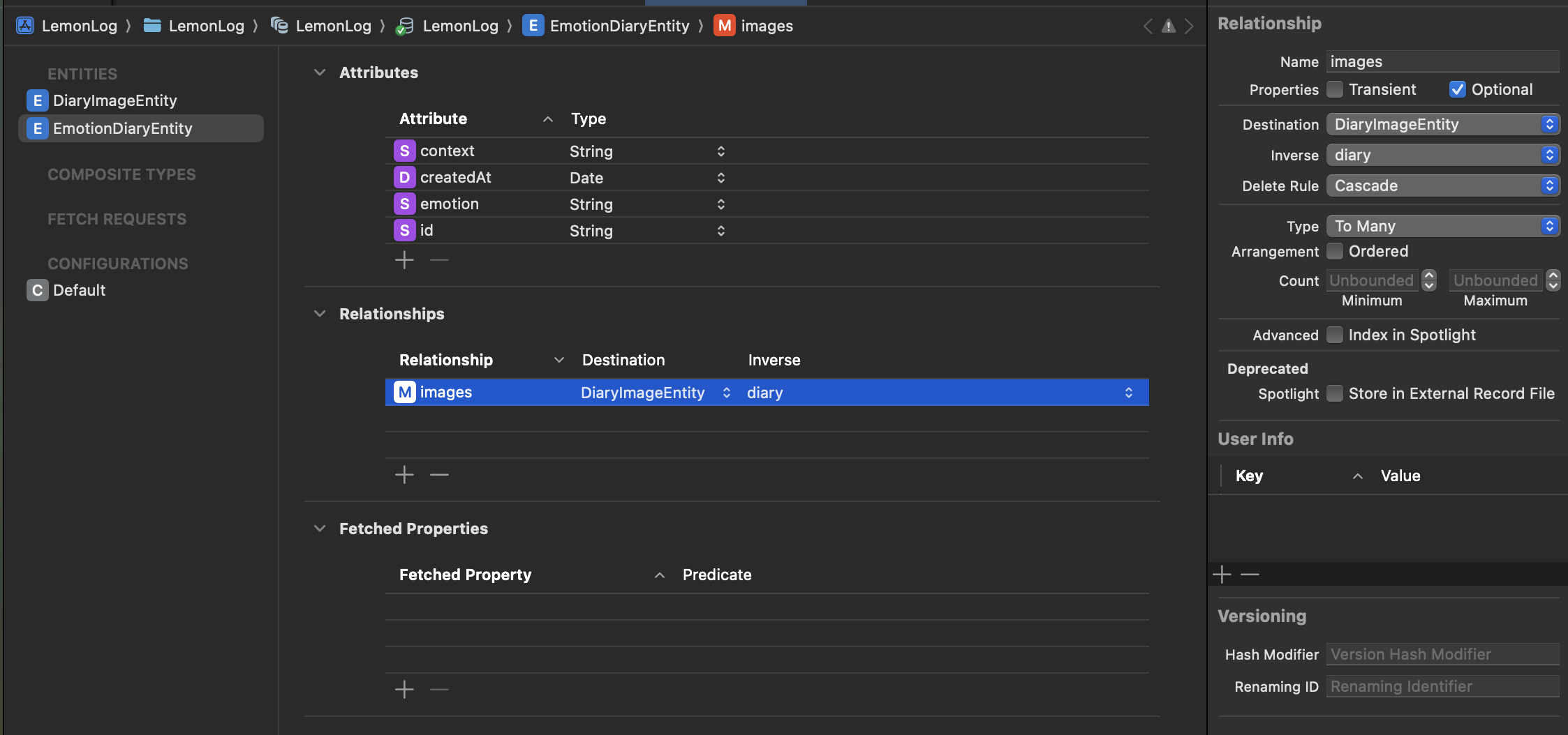 🍋 감정일기 앱의 Core Data 설계 — 왜 이미지 엔티티를 분리했는가?